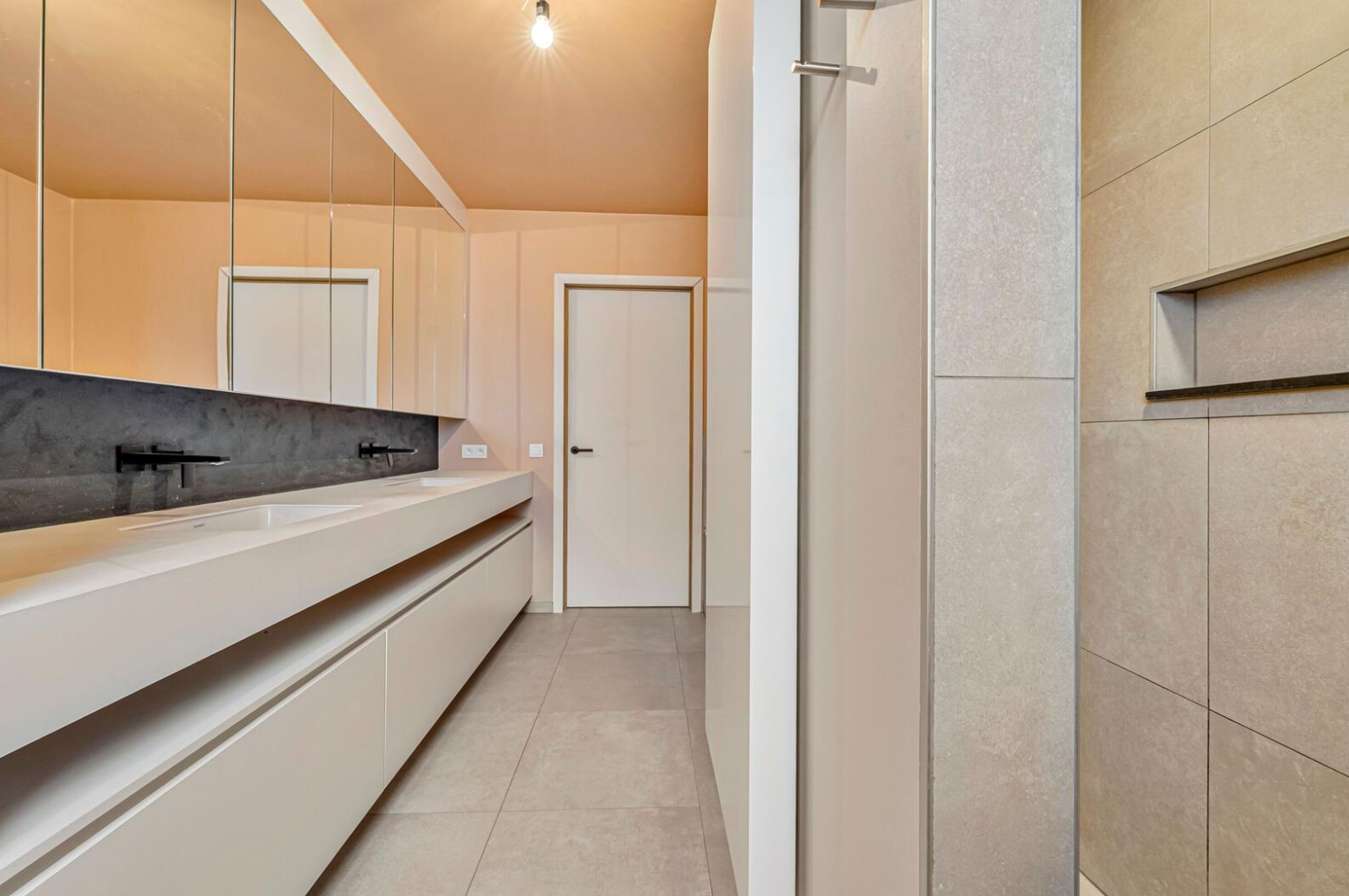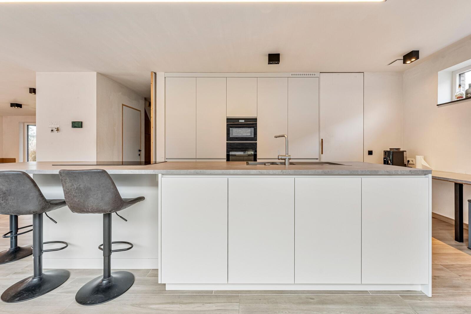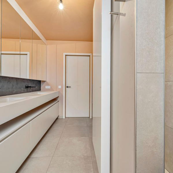 Moderne alleenstaande villa in een rustige wijk te Poperinge. Deze fijne paars-bruine genuanceerde gevelsteen werd niet alleen gebruikt voor de gevel maar ook voor de afwerking van de carport.