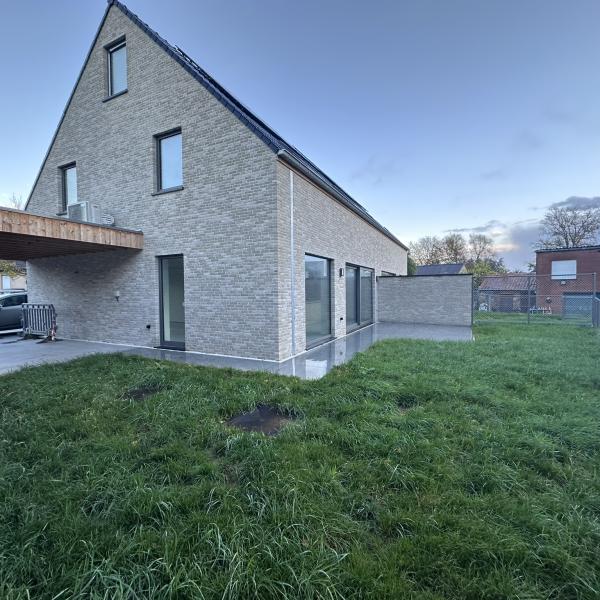 Nieuwbouwwoning te huur met 3 slaapkamers, tuin en carport. Rustig gelegen te Houthulst. Zeer energiezuinige woning met 10 zonnepanelen, airco, warmtepomp, regenwater, driedubbel glas,.. De woning is volledig geschilderd en zal nog voorzien worden van verlichtingsarmaturen en gordijnen. Dit huis bestaat uit: