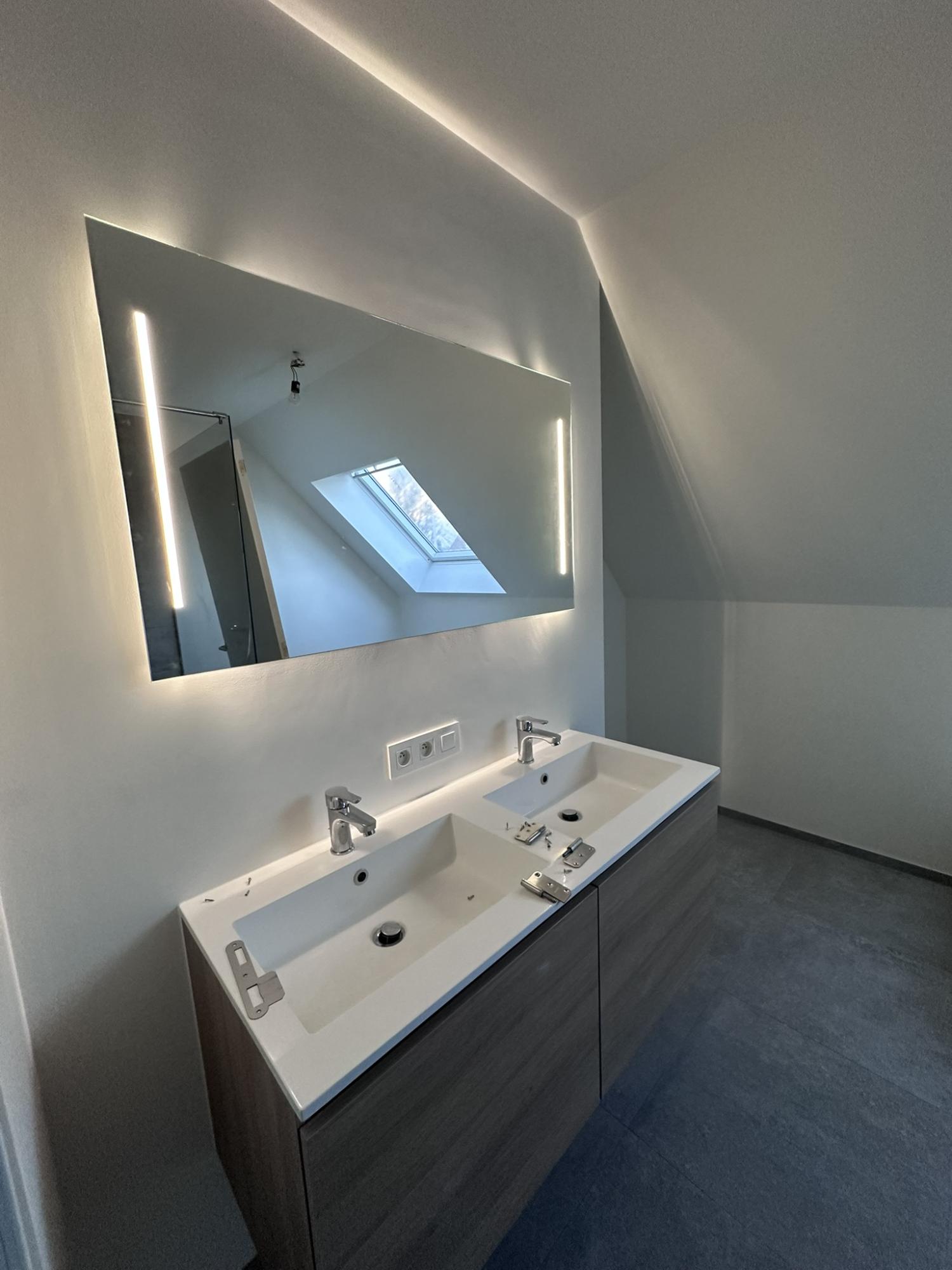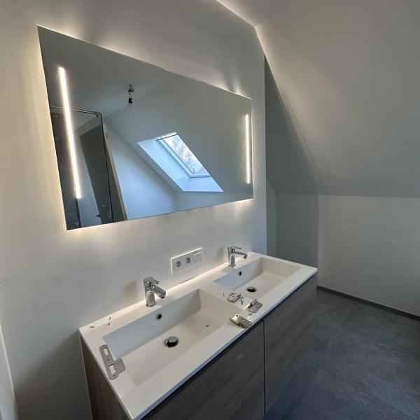 Verdiep +1: Nachthal met apart toilet - 3 slaapkamers - berging/wasplaats - badkamer voorzien van ligbad, dubbele wastafel met ingemaakte kasten en inloopdouche.