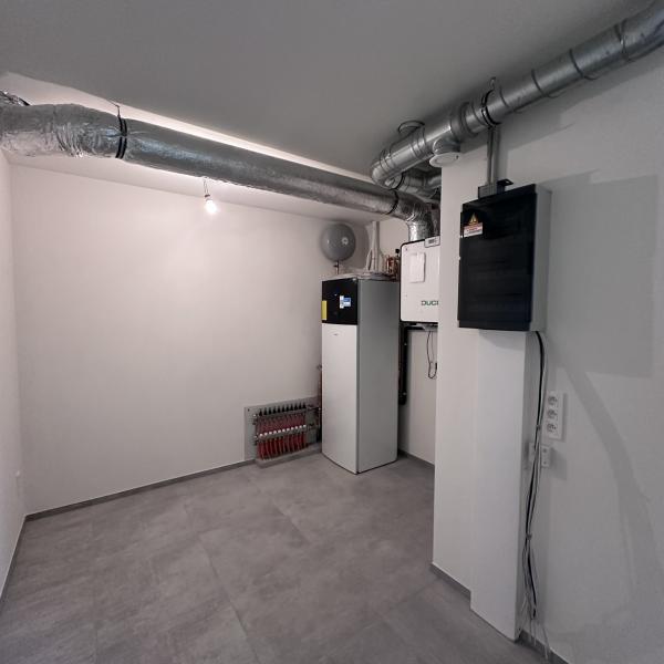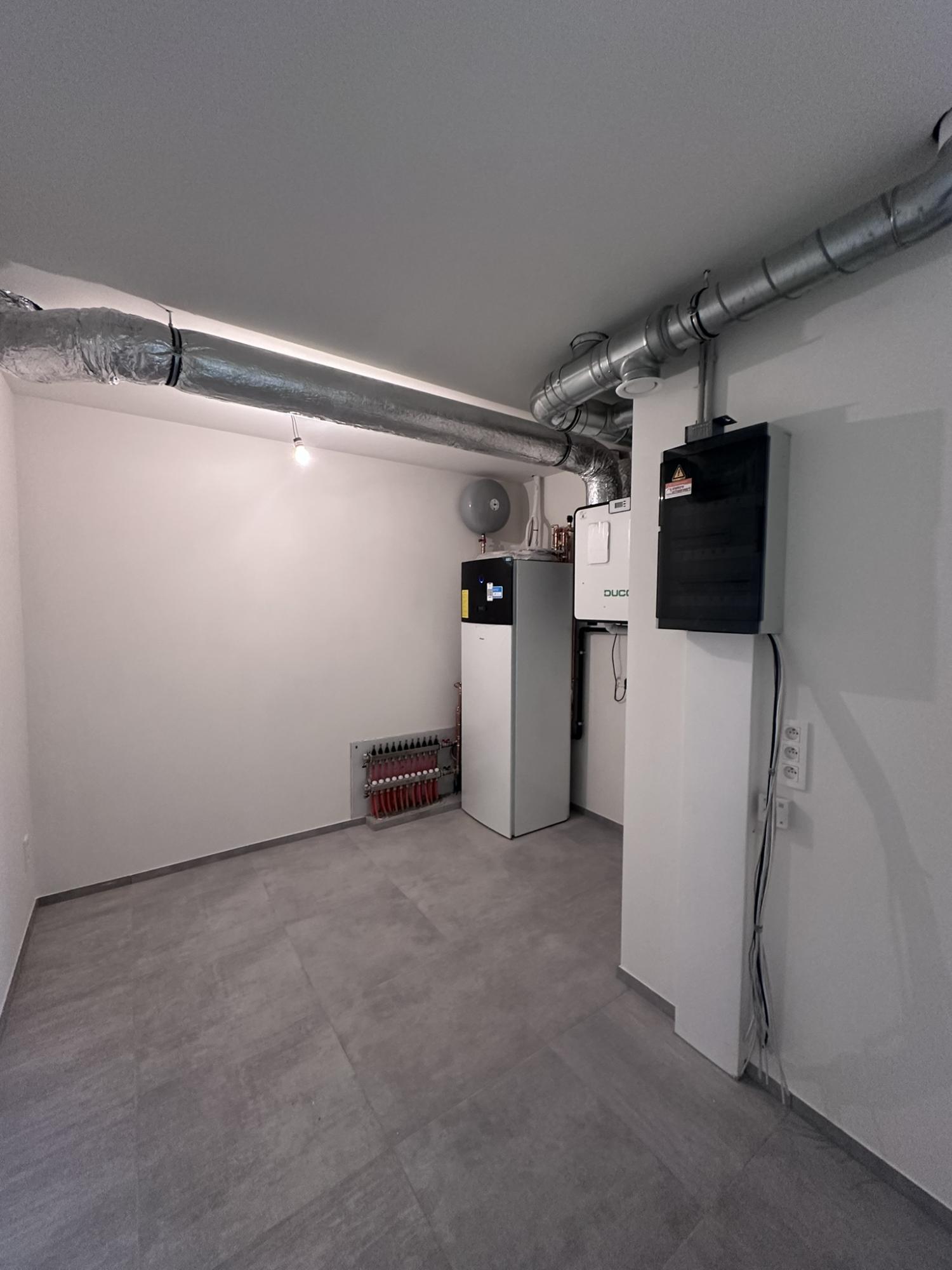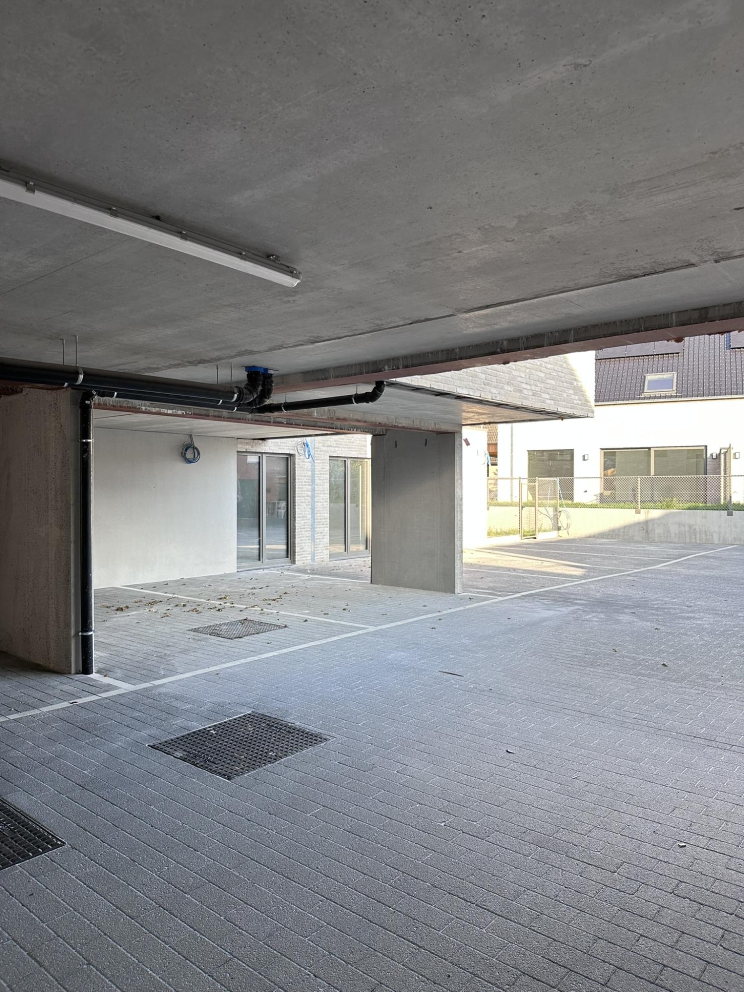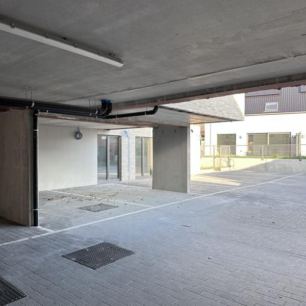 Gelijkvloers: Gemeenschappelijke fietsen-en vuilnisberging - mogelijkheid tot bijhuren private overdekte (40€/mnd) of niet-overdekte parkeerplaats (30€/mnd).