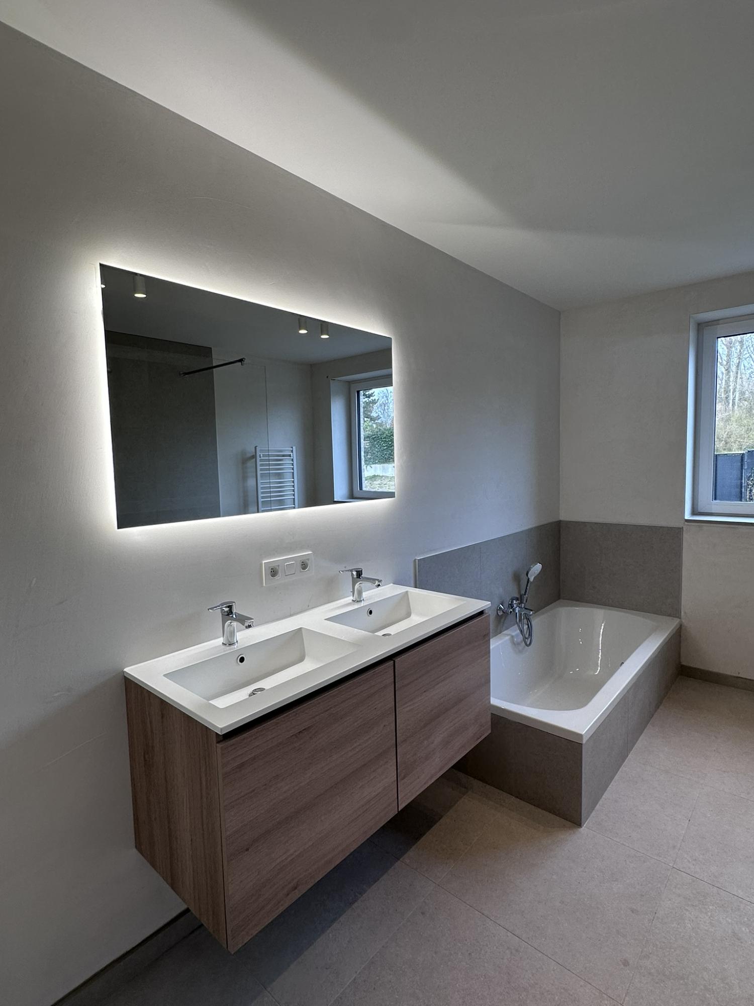 Verdiep +1: Nachthal met ingemaakte kast en apart toilet - 3 slaapkamers waarvan 1 met ruimte voor dressing - badkamer voorzien van dubbele wastafel, inloopdouche en ligbad.